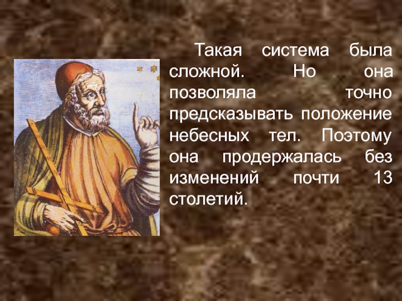 Слайд 16 Такая система была сложной. Но она позволяла точно предсказывать положение небесных