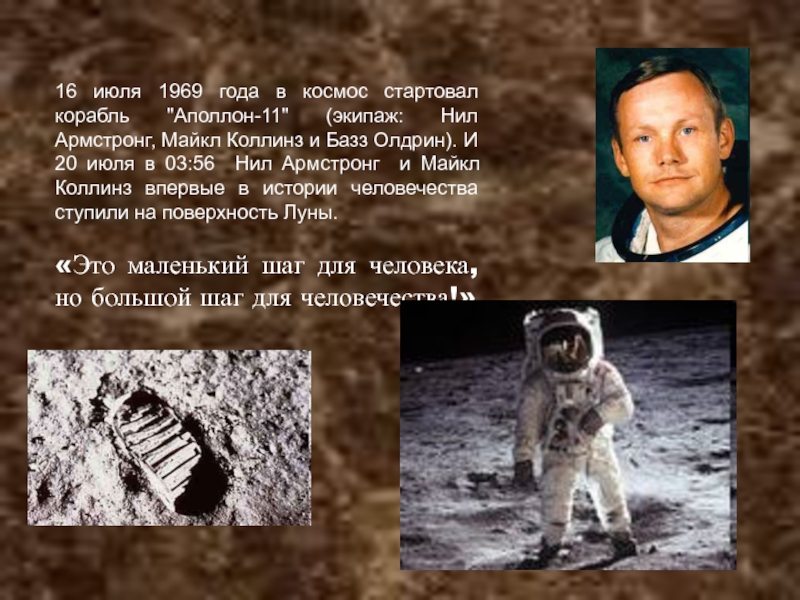 «Это маленький шаг для человека, но большой шаг для человечества!»