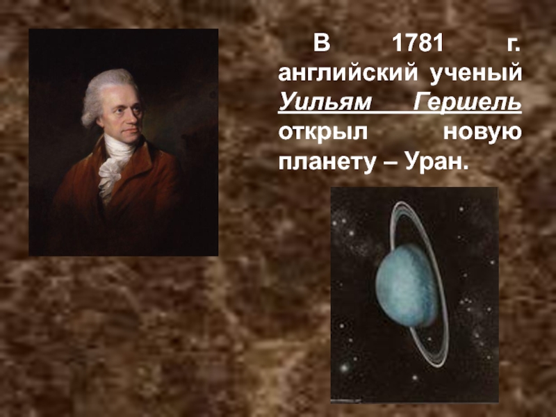 Слайд 35 В 1781 г. английский ученый Уильям Гершель открыл новую планету –