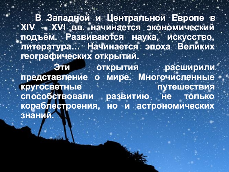 Слайд 26 Длительное наблюдение за звёздами и планетами, изучение трудов древних учёных убедили