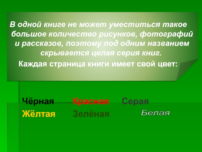 Каждая страница книги имеет свой цвет: