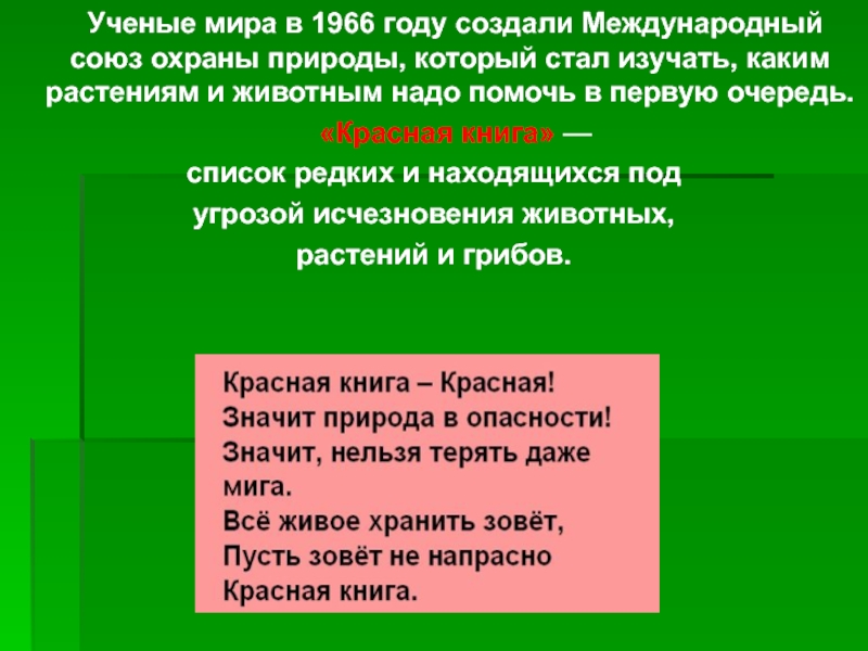 Слайд 12 Ученые мира в 1966 году создали Международный союз охраны природы, который