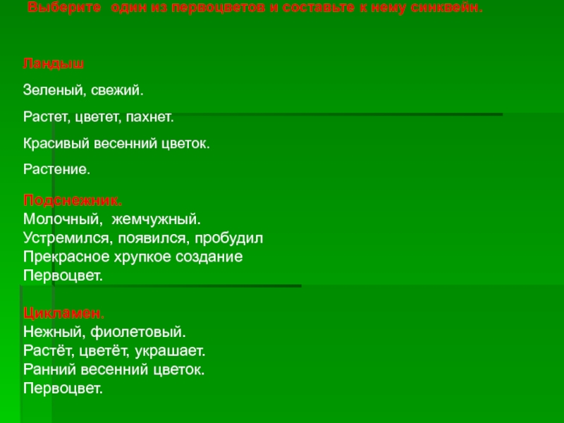 Слайд 37 Выберите один из первоцветов и составьте к нему синквейн.