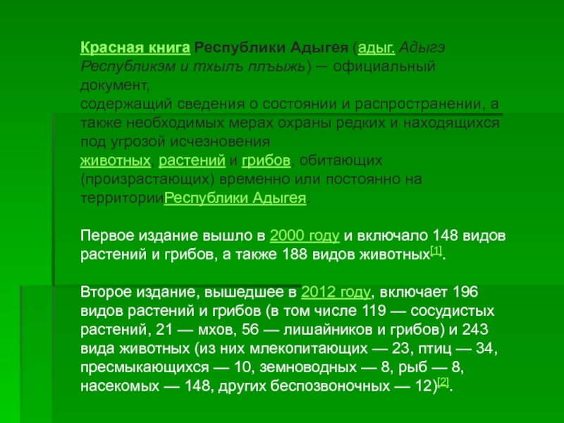Слайд 18Красная книга Республики Адыгея (адыг. Адыгэ Республикэм и тхылъ плъыжь) — официальный документ,