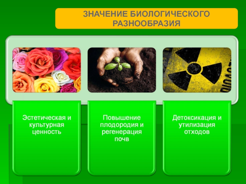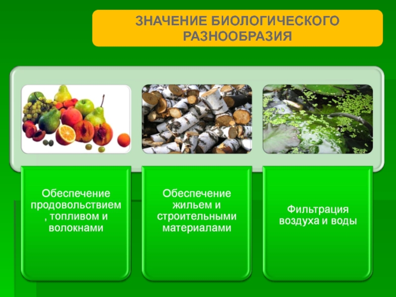 Слайд 9ЗНАЧЕНИЕ БИОЛОГИЧЕСКОГО РАЗНООБРАЗИЯ