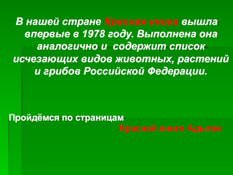 Слайд 16В нашей стране Красная книга вышла впервые в 1978 году. Выполнена