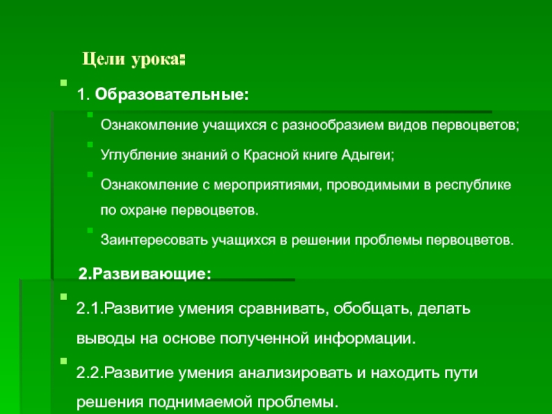 Заинтересовать учащихся в решении проблемы первоцветов.