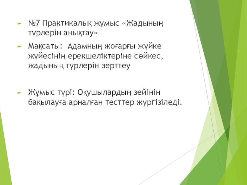 Слайд 29№7 Практикалық жұмыс «Жадының түрлерін анықтау»
