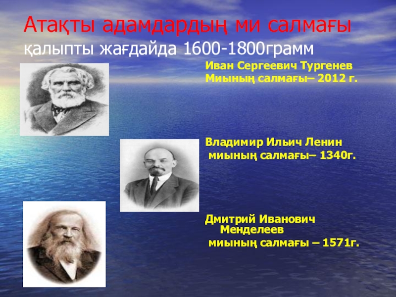 Слайд 26Атақты адамдардың ми салмағы