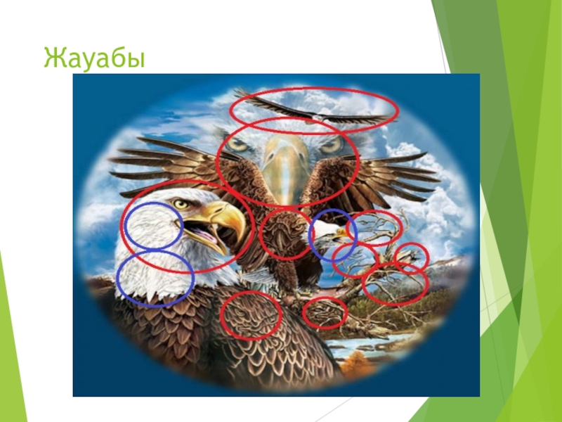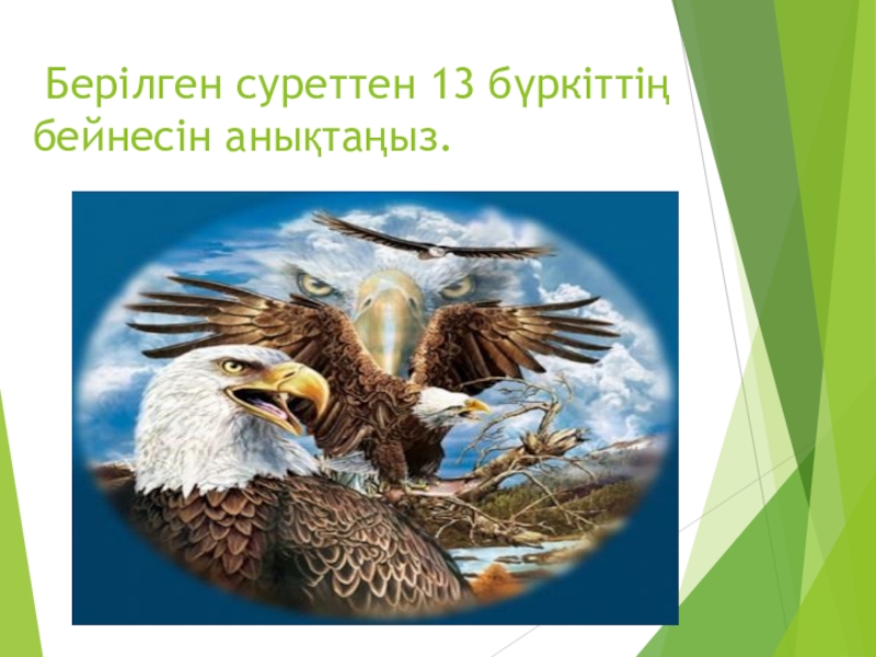 Слайд 34 Берілген суреттен 13 бүркіттің бейнесін анықтаңыз.