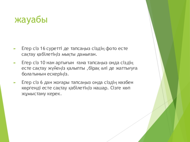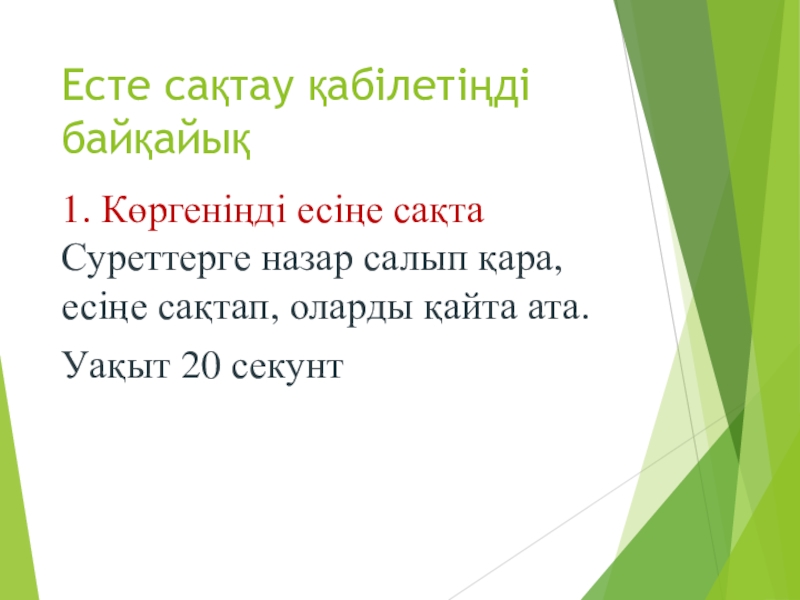 Слайд 36Есте сақтау қабілетіңді байқайық