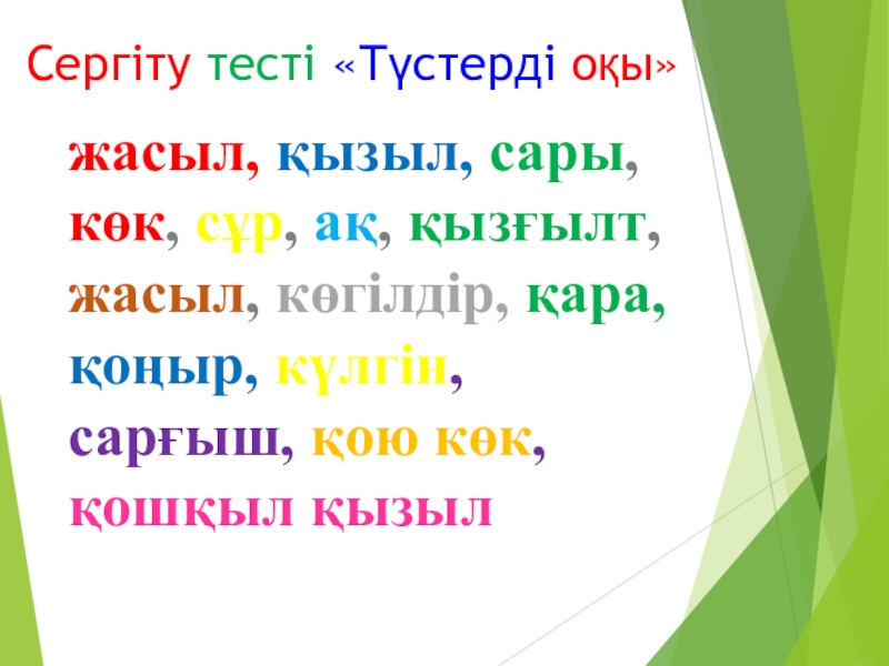 Слайд 23Сергіту тесті «Түстерді оқы»