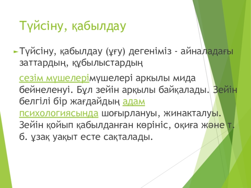 Слайд 13Түйсіну, қабылдау