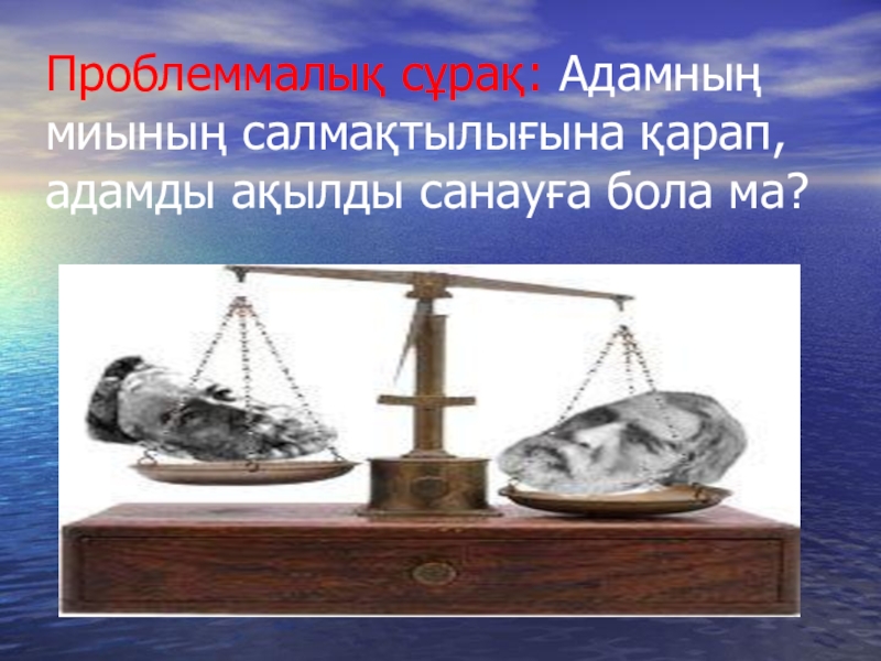 Проблеммалық сұрақ: Адамның миының салмақтылығына қарап,адамды ақылды санауға бола ма?