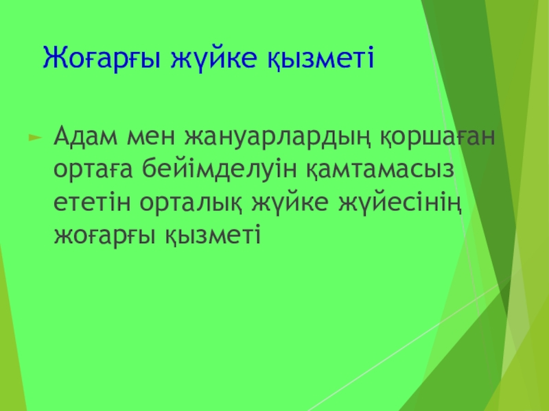 Слайд 1Жоғарғы жүйке қызметі