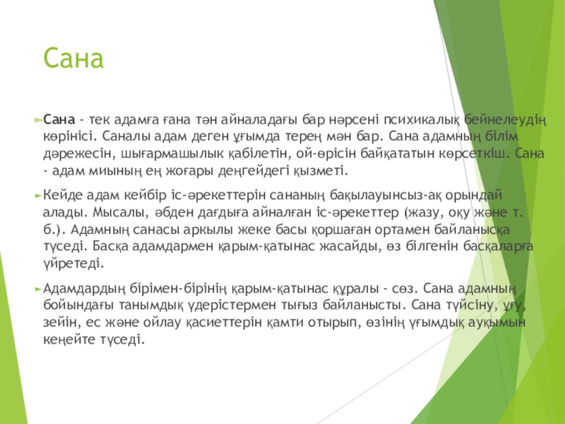 Сана - тек адамға ғана тән айналадағы бар нәрсені психикалық бейнелеудің