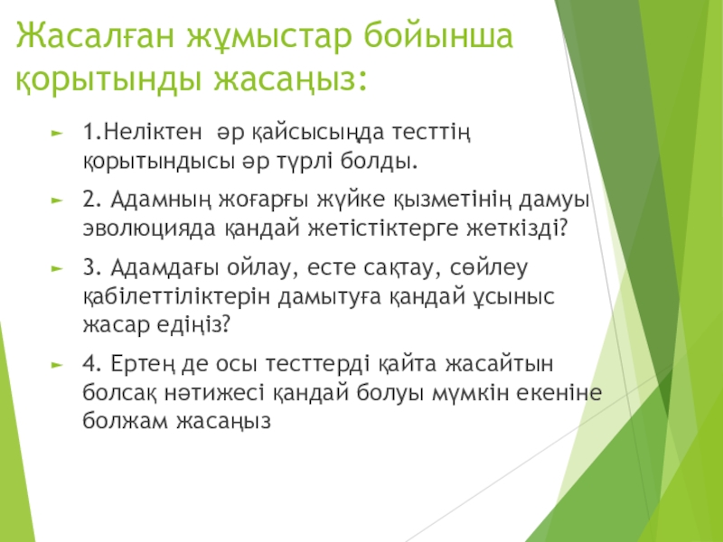 Слайд 41Жасалған жұмыстар бойынша қорытынды жасаңыз: