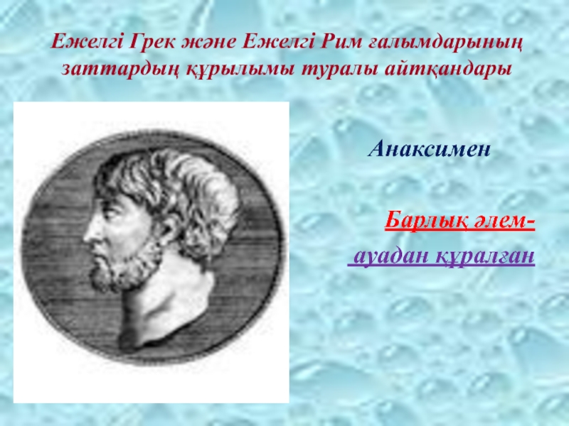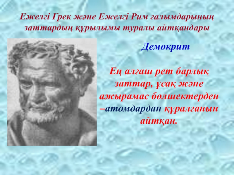 Слайд 9Ежелгі Грек және Ежелгі Рим ғалымдарының заттардың құрылымы туралы айтқандары