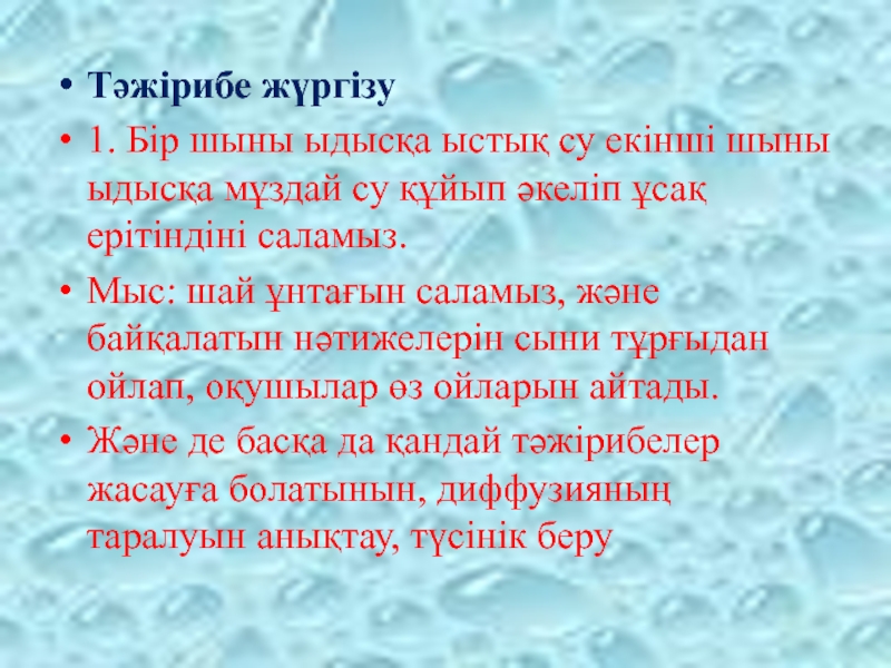 Слайд 1 Тақырыбы: Физикалық денелер мен заттардың сипаттамасы, диффузия