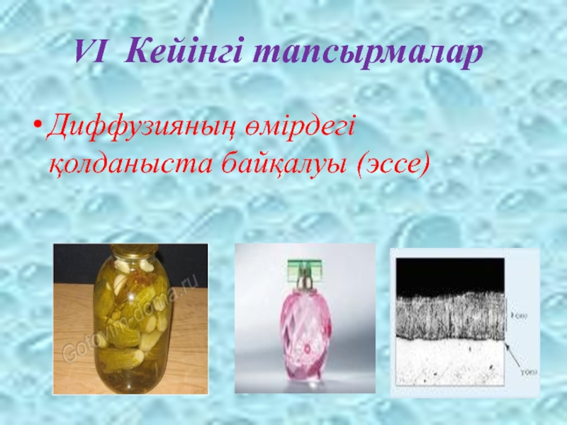VІ Кейінгі тапсырмалар Диффузияның өмірдегі қолданыста байқалуы (эссе)
