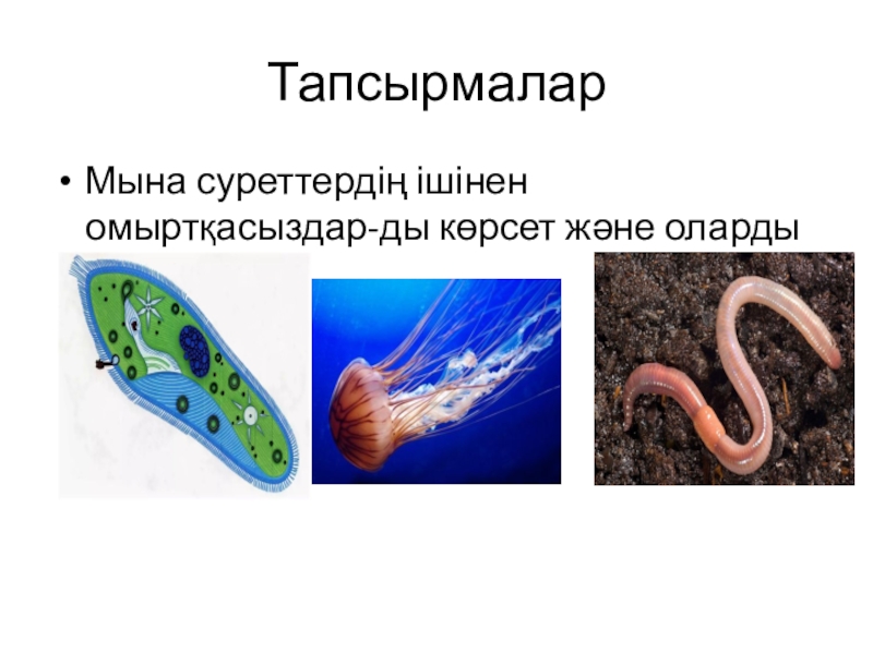 ТапсырмаларМына суреттердің ішінен омыртқасыздар-ды көрсет және оларды ата