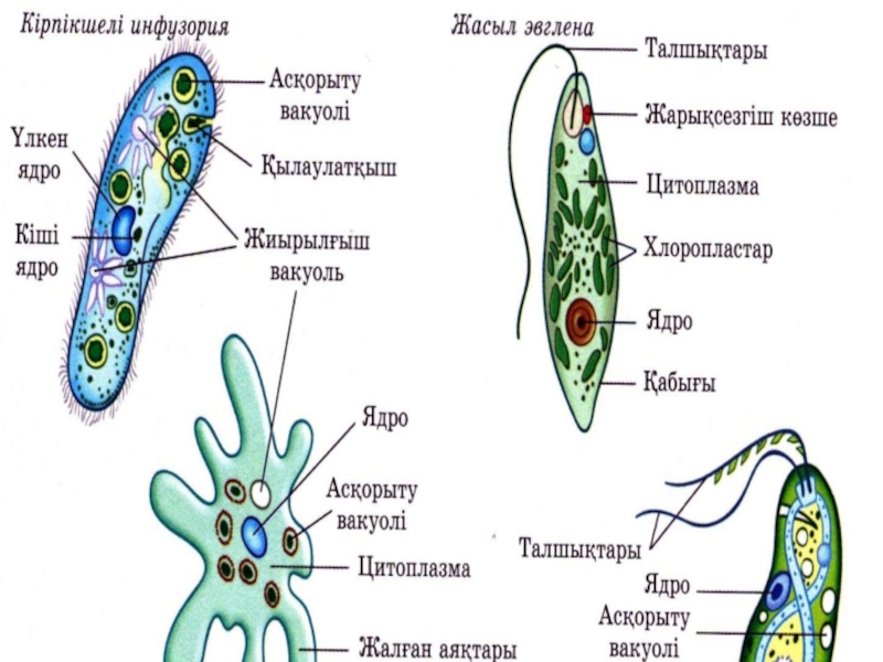 • жалғанаяқ, амеба, кірпікшелі кебісше, талшық, қарапайымдар, шаян;
