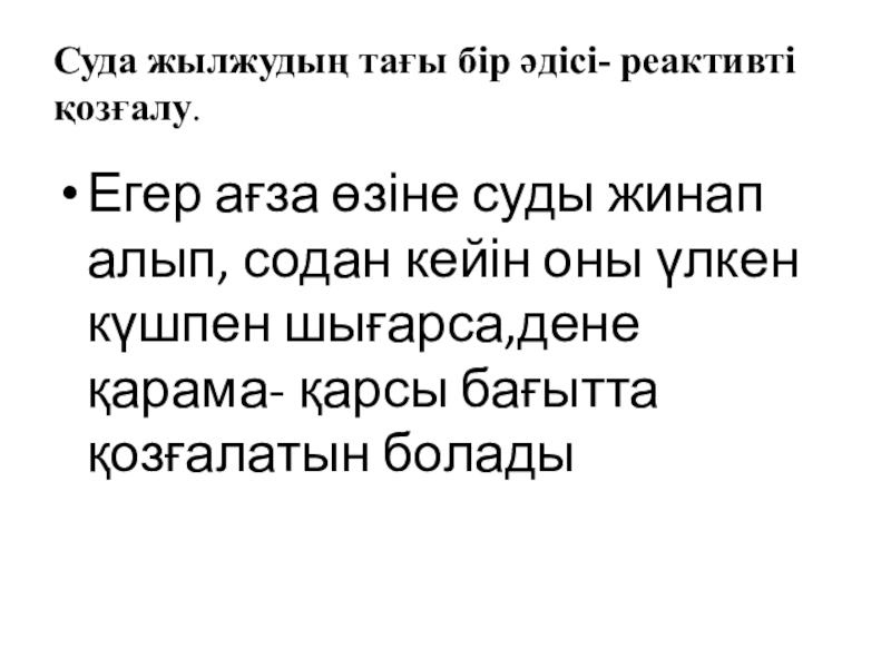 Слайд 11Суда жылжудың тағы бір әдісі- реактивті қозғалу.