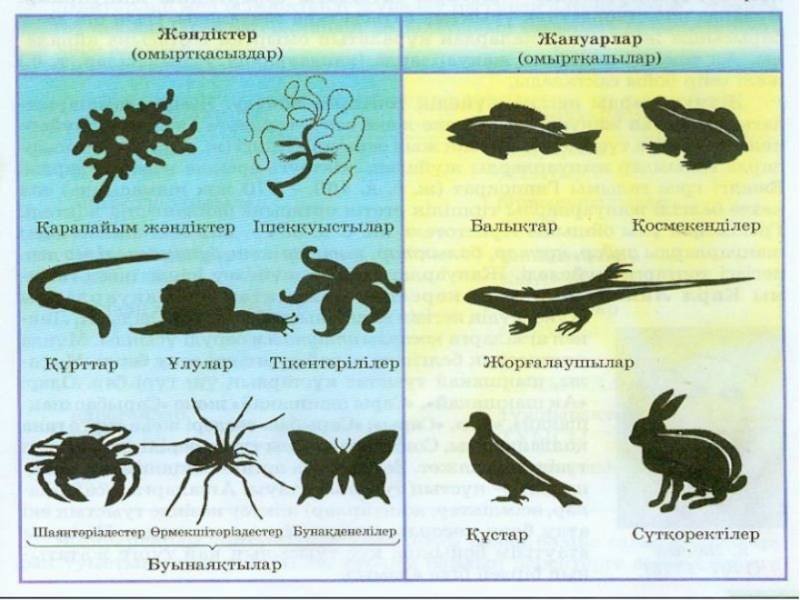 Мына суреттердің ішінен омыртқасыздар-ды көрсет және оларды ата