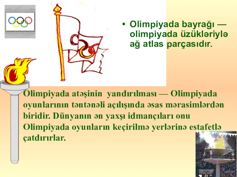 Olimpiyada bayrağı — olimpiyada üzükləriylə ağ atlas parçasıdır.