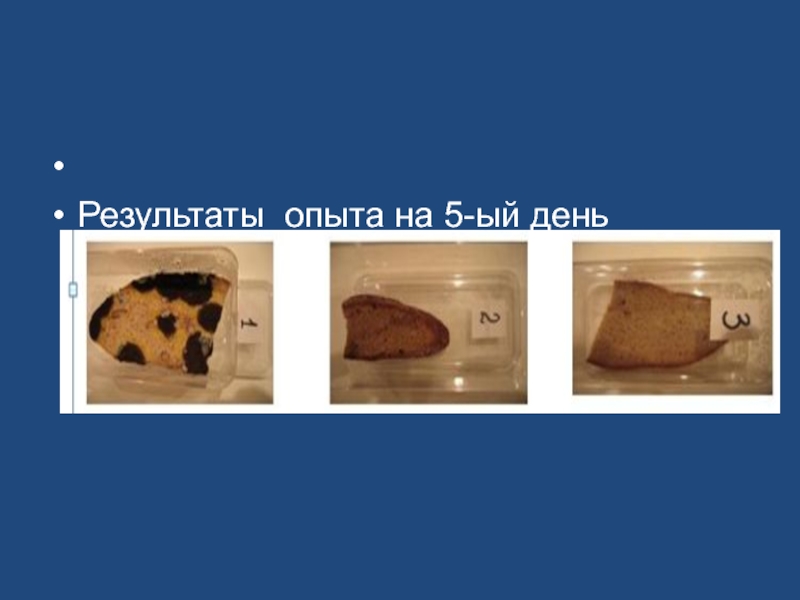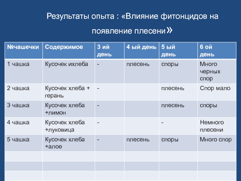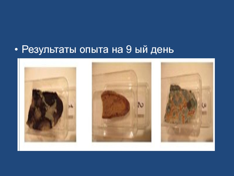 Слайд 20Результаты опыта : «Влияние фитонцидов на появление плесени»