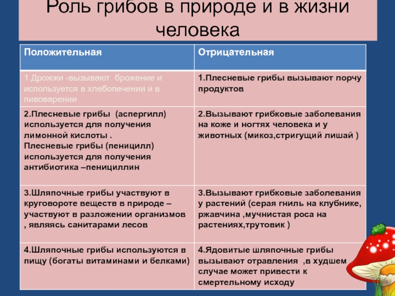 4.Уметь перечислять роль грибов в природе и в жизни человека .