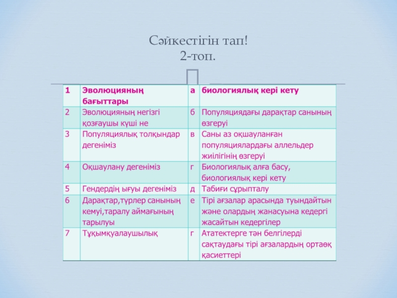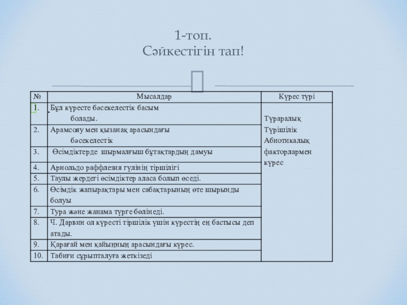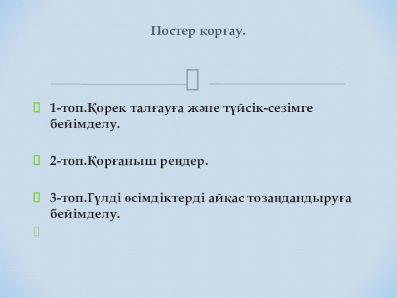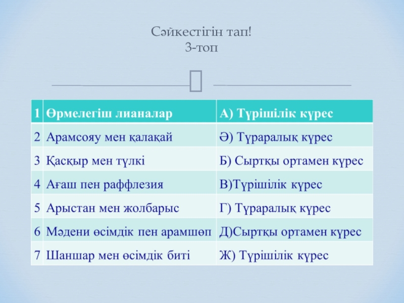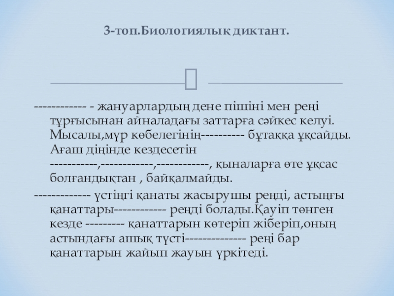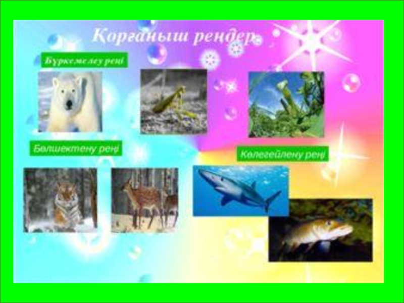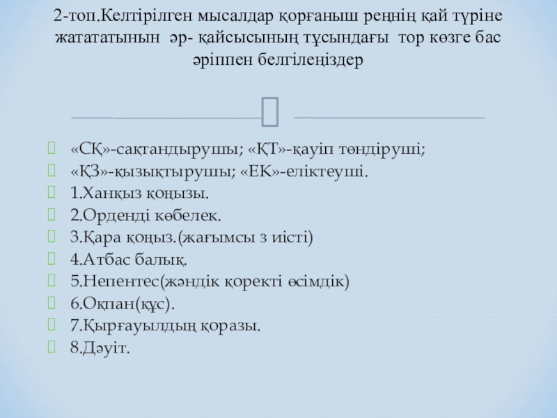 2-топ.Келтірілген мысалдар қорғаныш реңнің қай түріне жатататынын әр- қайсысының тұсындағы тор көзге бас әріппен белгілеңіздер