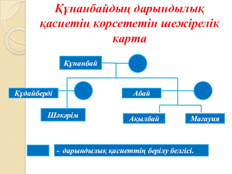 Слайд 8Құнанбайдың дарындылық қасиетін көрсететін шежірелік карта