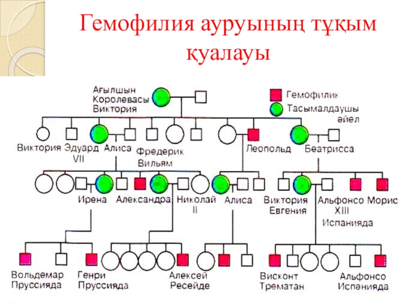 Слайд 9Гемофилия ауруының тұқым қуалауы