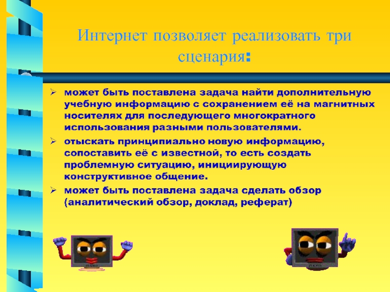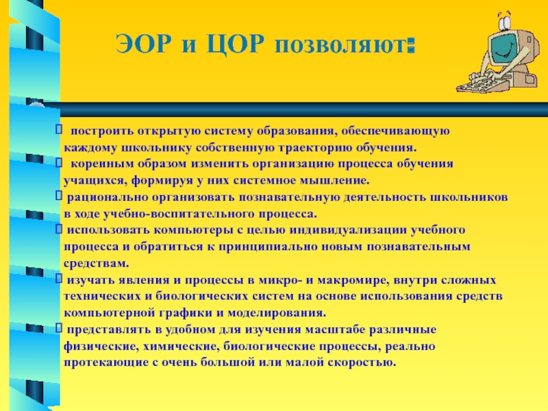 использовать компьютеры с целью индивидуализации учебного процесса и обратиться к принципиально новым познавательным средствам.