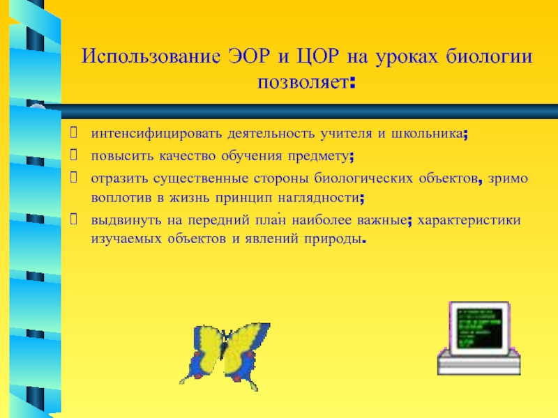 Слайд 9Использование ЭОР и ЦОР на уроках биологии позволяет: