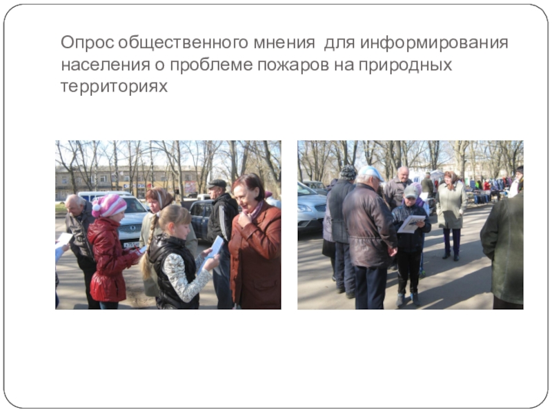 Слайд 3Опрос общественного мнения для информирования населения о проблеме пожаров на природных