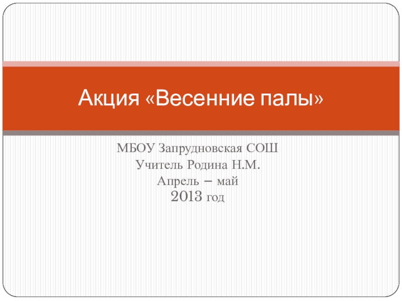 МБОУ Запрудновская СОШУчитель Родина Н.М.Апрель – май2013 годАкция «Весенние палы»