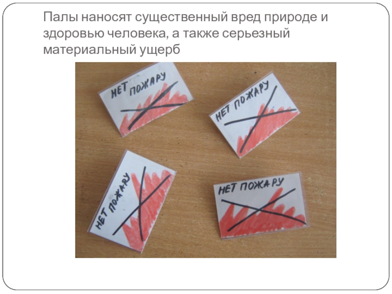 Слайд 18Палы наносят существенный вред природе и здоровью человека, а также серьезный