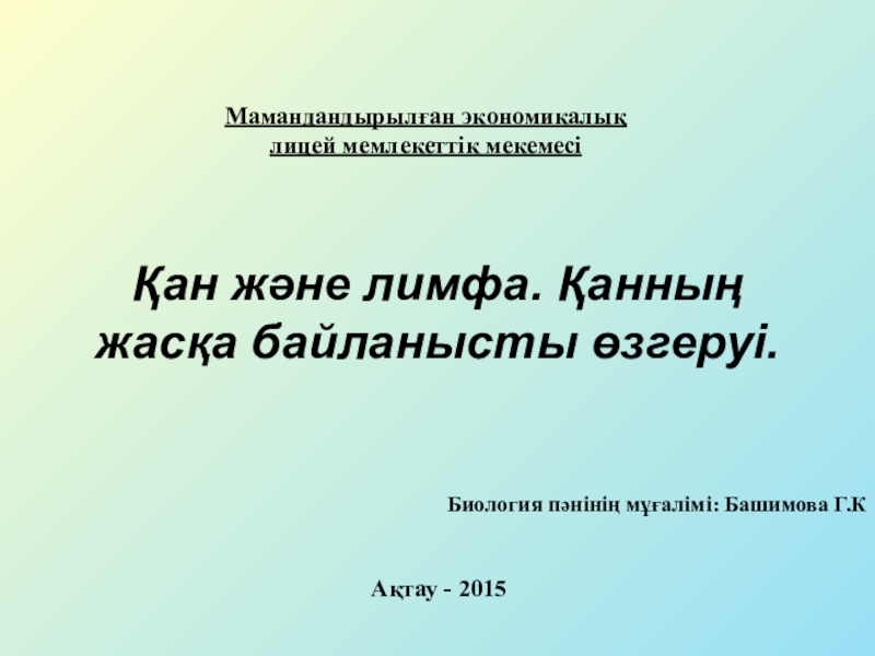 Биология пәнінің мұғалімі: Башимова Г.К