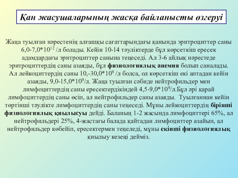 Қан жасушаларының жасқа байланысты өзгеруі