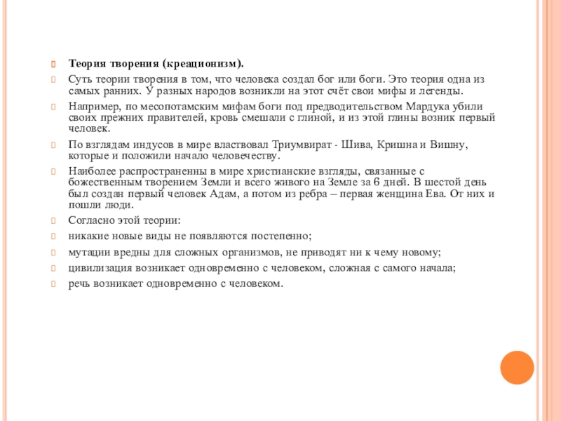 Начнем с первого вопроса: Какие существуют теории, объясняющие возникновение человека на Земле?