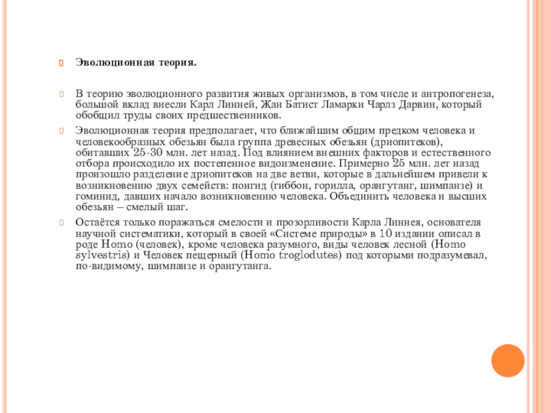 антропогенеза, большой вклад внесли Карл Линней, Жан Батист Ламарки Чарлз Дарвин, который обобщил труды своих предшественников.