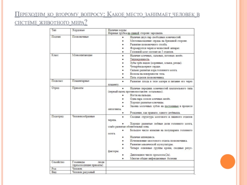 Слайд 8Переходим ко второму вопросу: Какое место занимает человек в системе животного