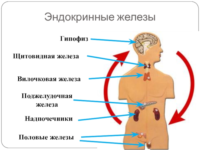 Эндокринные железыГипофизЩитовидная железаВилочковая железаПоджелудочная железаНадпочечникиПоловые железы