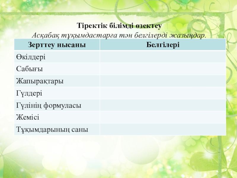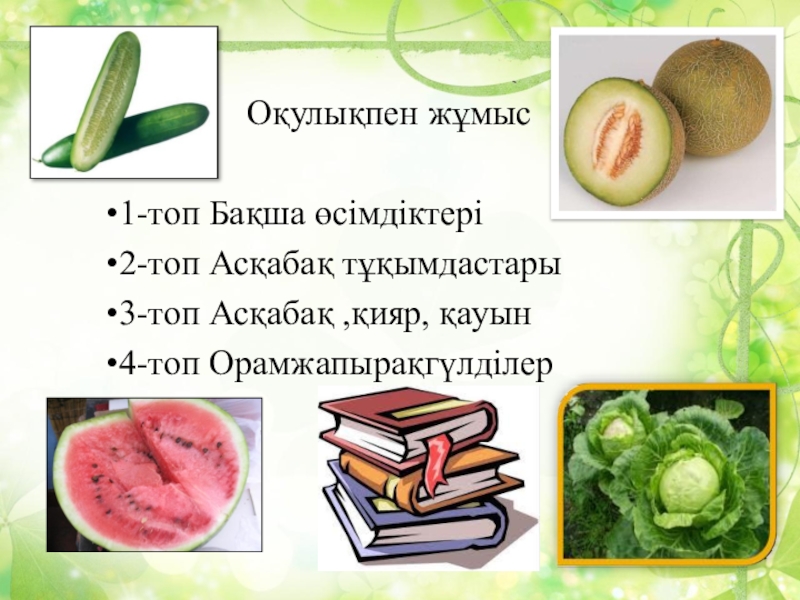 Асқабақ және орамжапырақ тұқымдастарының түрлерін туралы топпен оқып меңгереді;