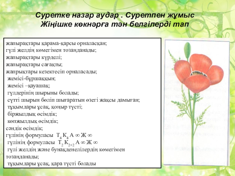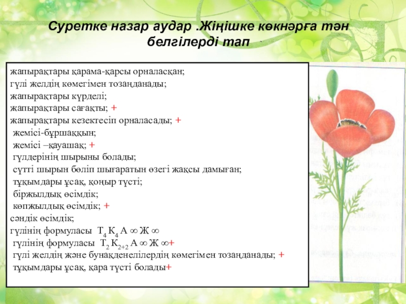 Суретке назар аудар .Жіңішке көкнәрға тән белгілерді тап