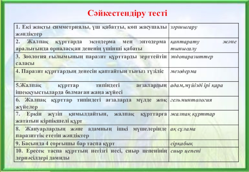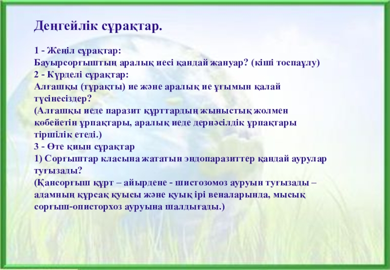Тақырыбы: «Сорғыш құрттар. Даму циклы