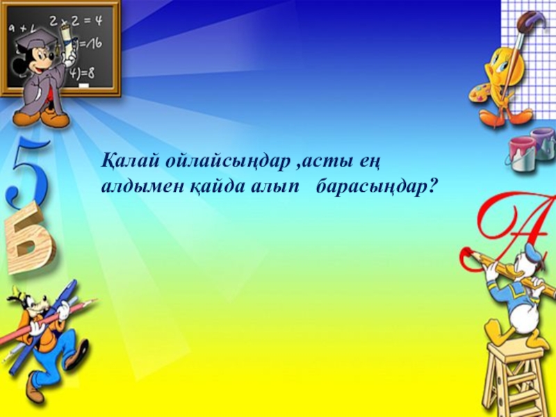 Қалай ойлайсыңдар ,асты ең алдымен қайда алып барасыңдар?