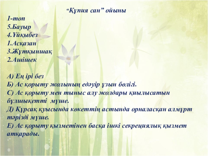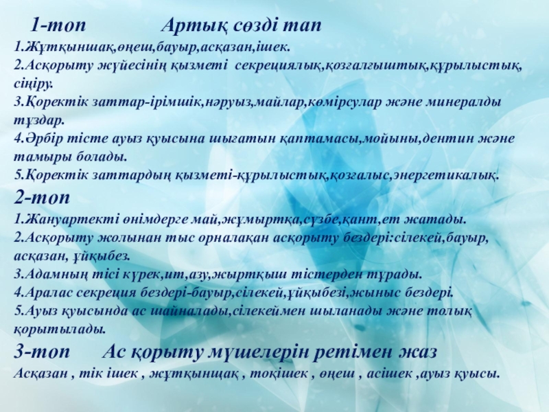 3-топ Ас қорыту мүшелерін ретімен жаз